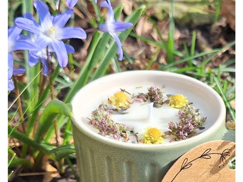 Je vyrobena z kvalitního sójového vosku, který zajišťuje čisté a rovnoměrné hoření. Ideální pro chvíle relaxace, osvěžení prostoru i jako stylový doplněk interiéru. Je ozdobena sušenými bylinkami.